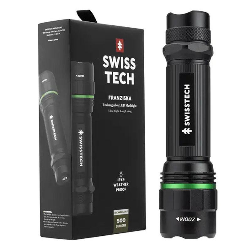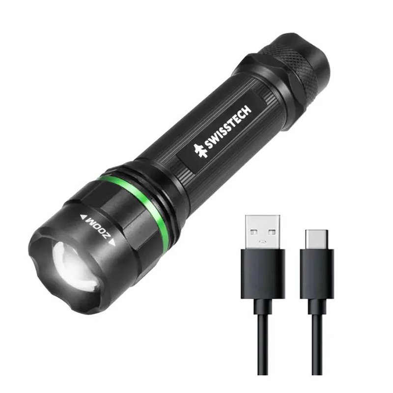 Swisstech ST031620 500 Lumen Drop Proof Zoomable Rechargeable Aluminium Torch
